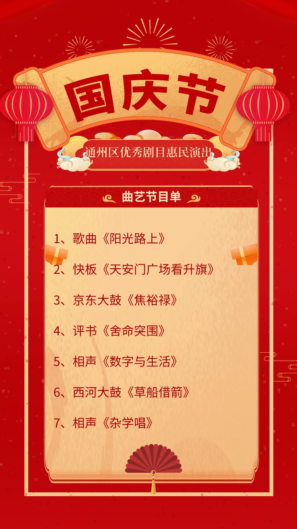 在金风送爽、丹桂飘香的国庆佳节,通州区优秀剧目惠民演出曲艺专场盛大开启,以多元艺术形式为市民打造视听盛宴,为国庆增添绚丽文化色彩。