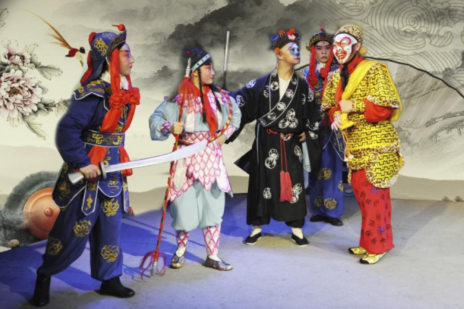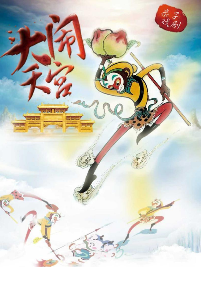 孙悟空第一次上天被玉帝封为弼马温,只因为众神仙嘲笑他官职太小一气之下回到花果山,太白金星二次保举封孙悟空为“齐天大圣”,使管桃园。悟空来到蟠桃园,从土地爷口中得知蟠桃宴有很多神仙并未邀请于他,一怒之下,闯进瑶池,偷食酒果;大闹蟠桃会。天宮集中兵力,在李天王率领之下,哪吒为先锋和孙悟空大战,反被孙悟空打败。孙悟空高唱凯歌,胜利回山。