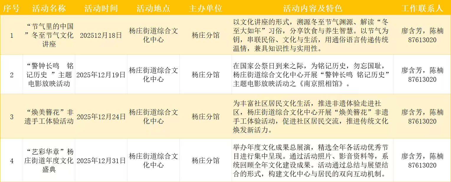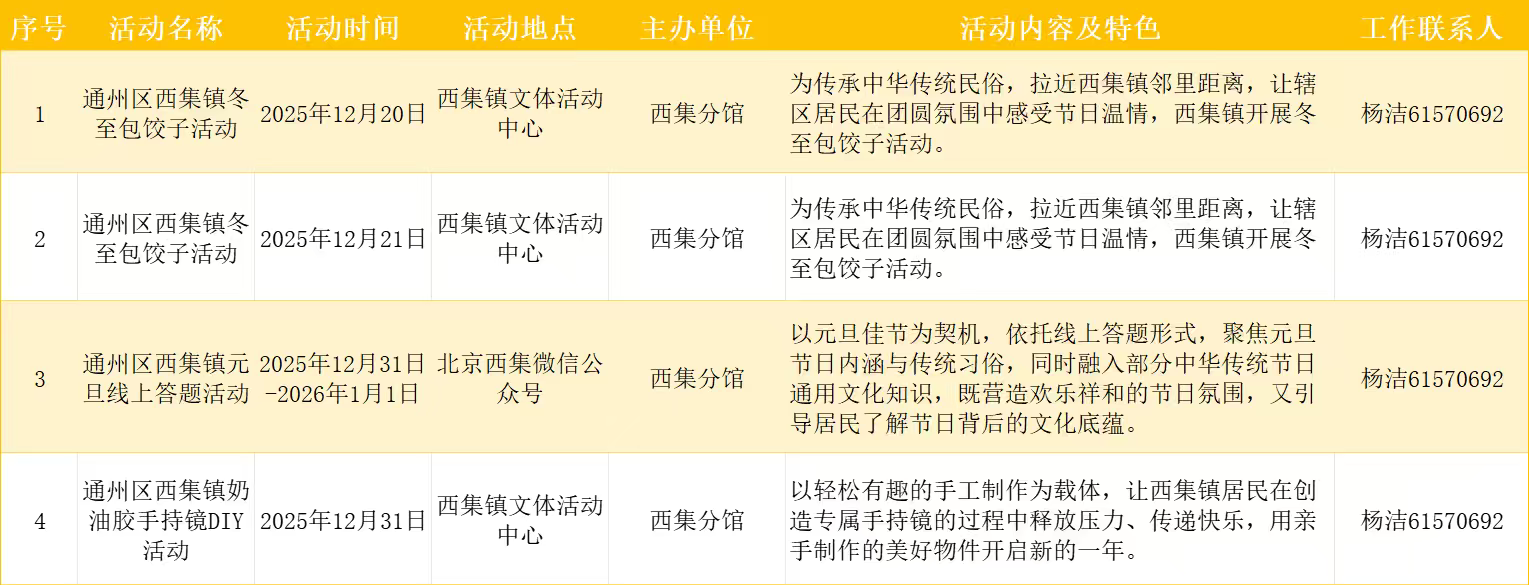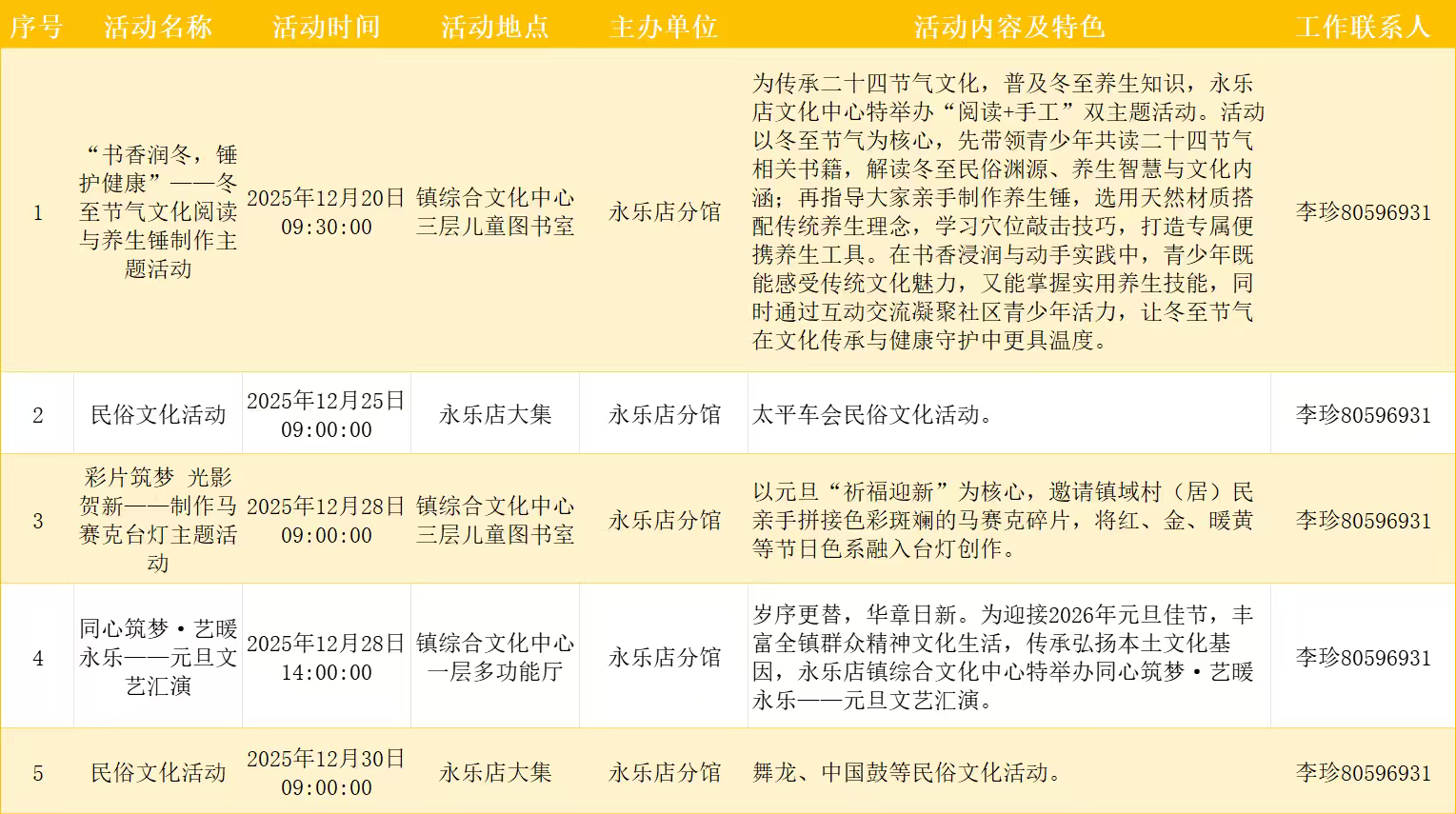 通州区文化馆各街道(乡镇)分馆十二月精彩活动一览