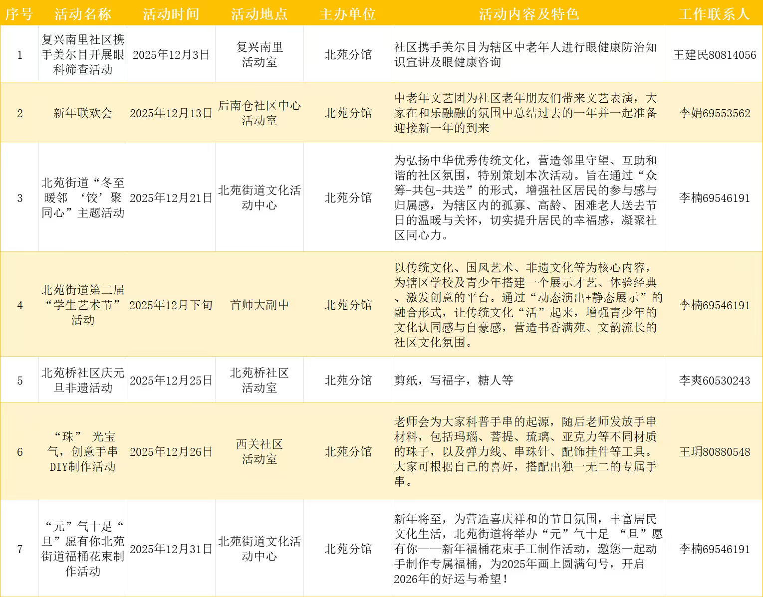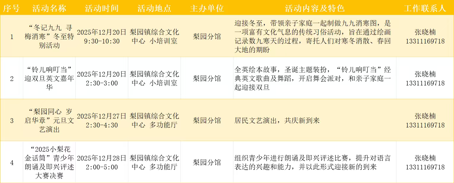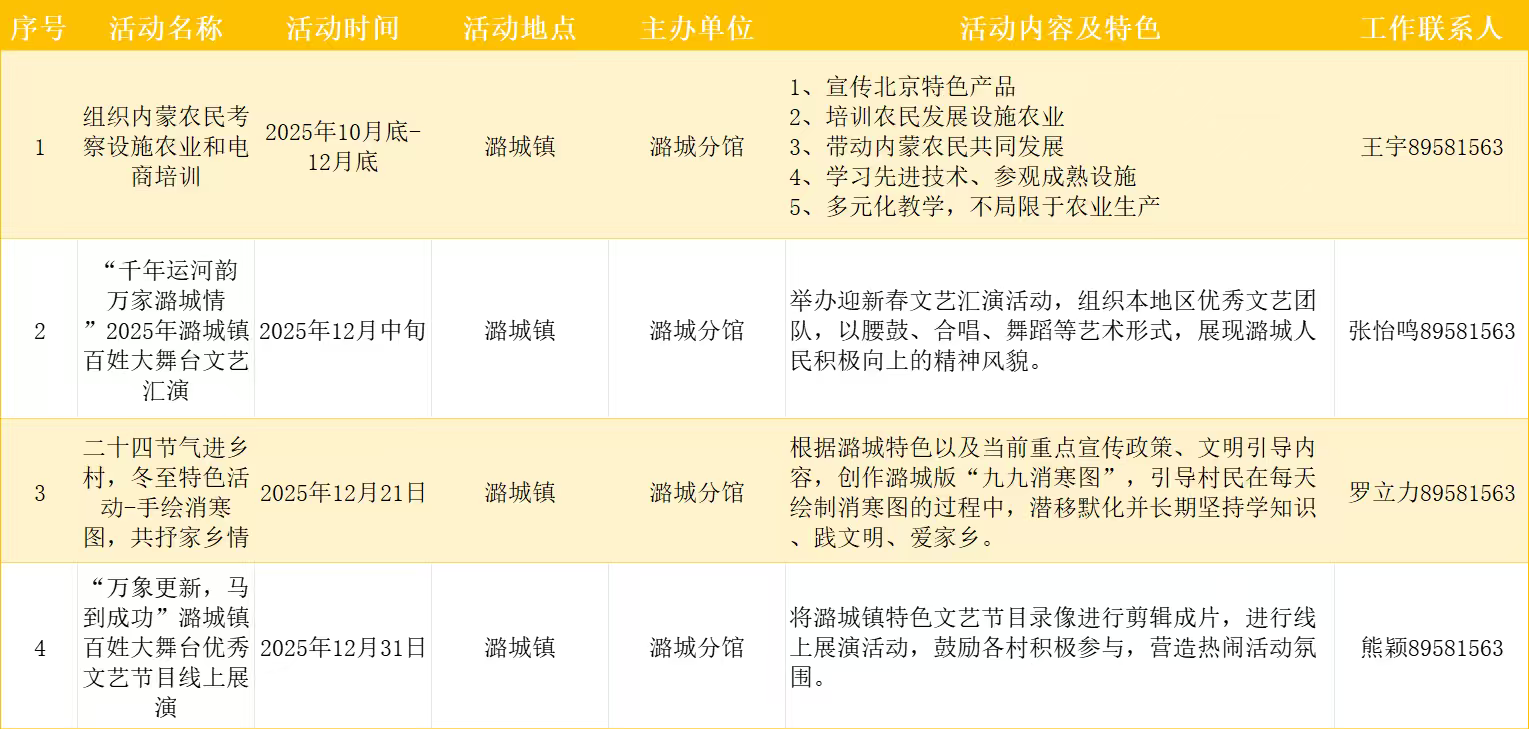 通州区文化馆各街道(乡镇)分馆十二月精彩活动一览