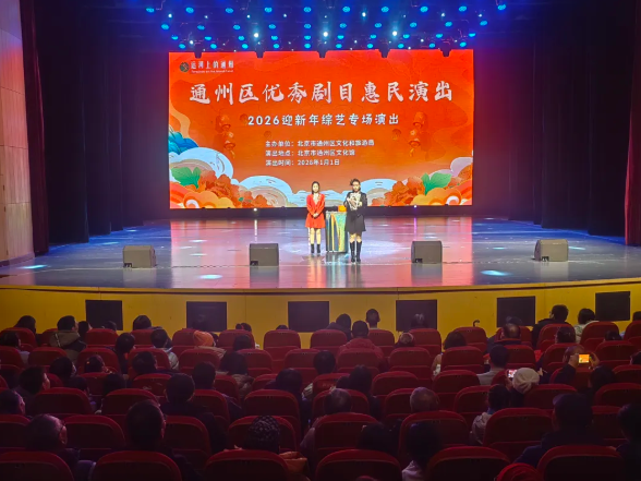 1月2日由通州区文化和旅游局主办的“花开盛世”惠民演出,简直是把“热闹”和“韵味”打包扔在了剧场里 —— 开场歌声刚起,那股裹着家国暖意的旋律就把全场的情绪“拎”了起来;紧接着对口快板的竹板“啪”地一响,中轴线的红墙黛瓦像跟着唱词活了过来;单弦《北京小吃赞》一开口,豆汁儿的酸香、驴打滚的软糯都快顺着弦音飘出剧场;相声表演跟串珠子似的,前一个刚笑完,后一个又继续砸在笑点上,满场的掌声裹着笑声,把元旦的热乎气儿都焖得更浓了。
