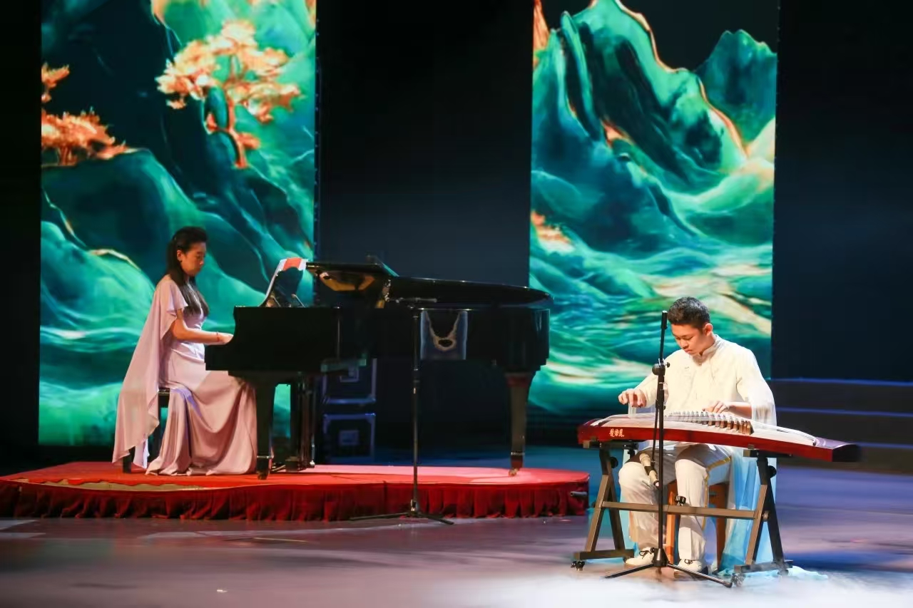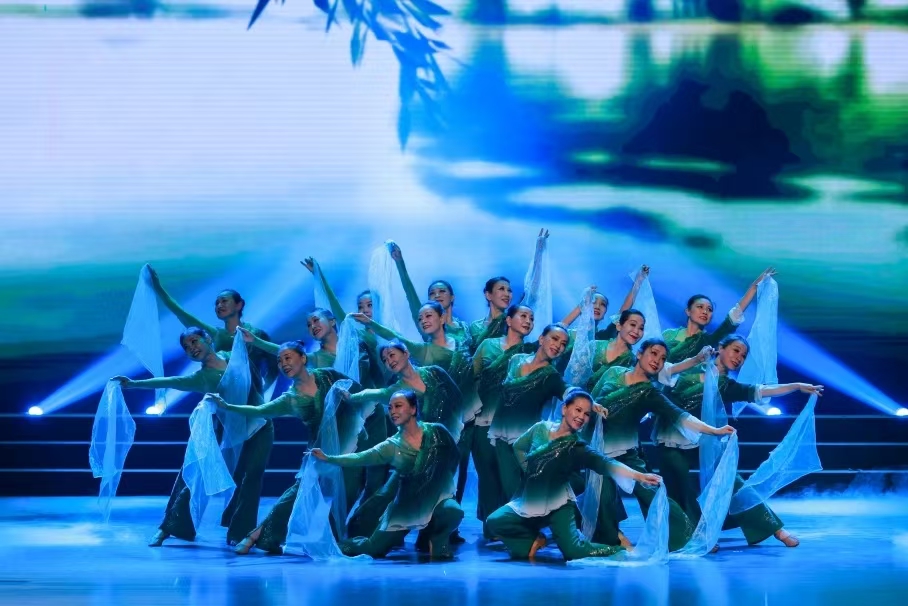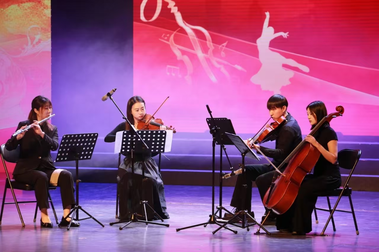 金奖作品的登台让展演亮点纷呈,《凤河春水》《玉盘》等舞蹈柔美飒爽,童声合唱、长笛四重奏、古筝独奏等节目各展风采,赢得观众阵阵掌声,全场最终齐唱《我和我的祖国》,为活动画上圆满句号。