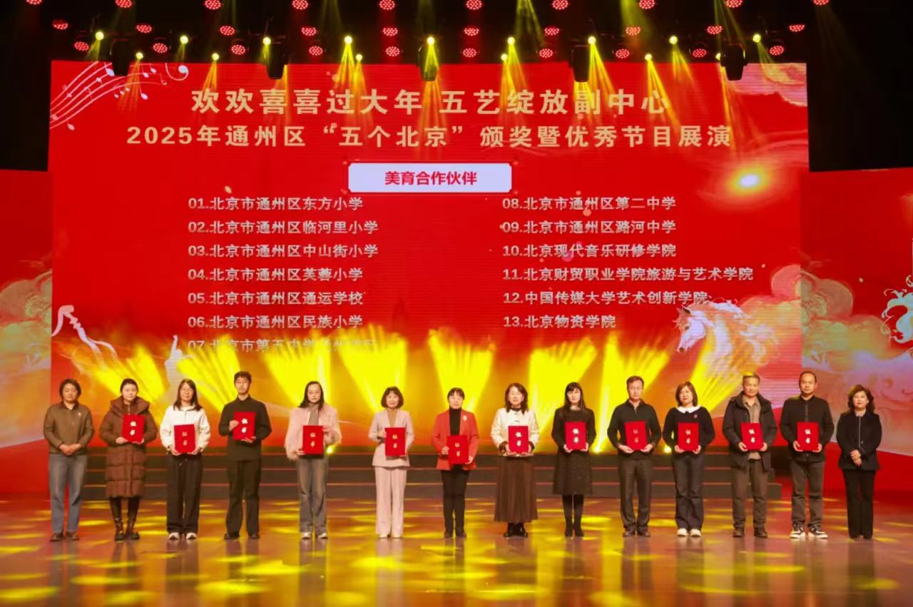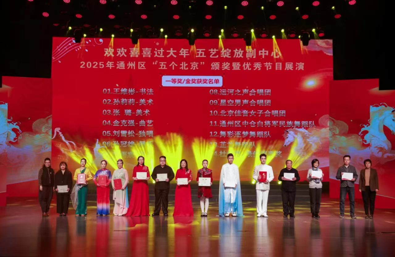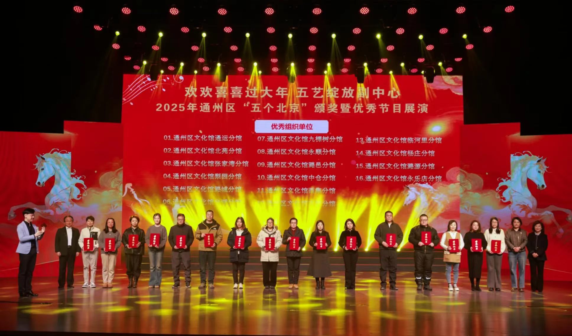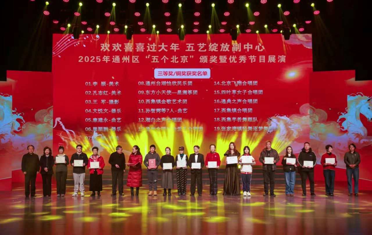 腊梅吐香迎腊八,运河文脉润民心。1月26日腊八佳节,由通州区文化和旅游局指导、通州区文化馆主办的2025年通州区“五个北京”颁奖暨优秀节目展演在区文化馆温情启幕。活动以“欢欢喜喜过大年 五艺绽放副中心”为主题,将传统节日温馨氛围与群众文化蓬勃活力深度融合,通过庄重颁奖与精品展演,集中展现2025年通州群众文化建设丰硕成果,奏响文化惠民、以文铸魂的动人乐章。